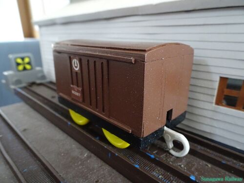 ワム93287 かしゃのワムくん、番号は93287(くさにはな)です。やまのえきの駅長さんの引っ越しの荷物を降ろしてから一月以上駅の一番端っこに停められていました。ある日、高橋農園のりんご箱が積み込まれ、かもつれっしゃに繋げられて出発します。 ワム93287…
