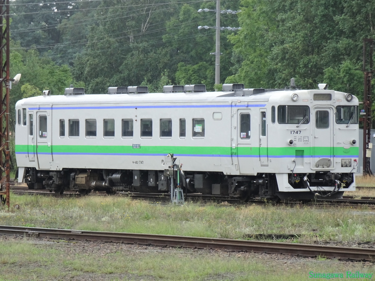 キハ40 1745は1986年6月、キハ40 169の時に記録が残っています。1980年に製造され、当初は釧路に配置されましたが、この時期に上砂川支線での運用が目撃されています。これは仮説ですが、根室本線の運用の合間などで用いられていたのではないでしょうか。後に釧路所属のキハ27・56形がラッシュ時に2両で入線していた時期もあります。1991年にはキハ40 745に改造されたうえで旭川に転属しています。2011年には1700番台に改造されています。現在も旭川に所属していますが、残念ながら撮影できていません。